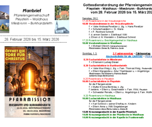 01.03.2026 - 9 Uhr - Pfarrheim Pleystein Pfarrgemeinderatswahl 2026 01.03.2026 - 9 Uhr - Pfarrheim Pleystein Am Sonntag, 1.