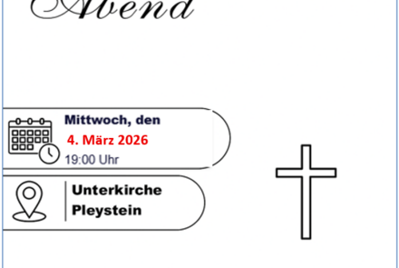 04.03.2026 - 19 Uhr - Unterkirche Pleystein Lobpreisabend 04.03.2026 - 19 Uhr - Unterkirche Pleystein Am Mittwoch, 4.